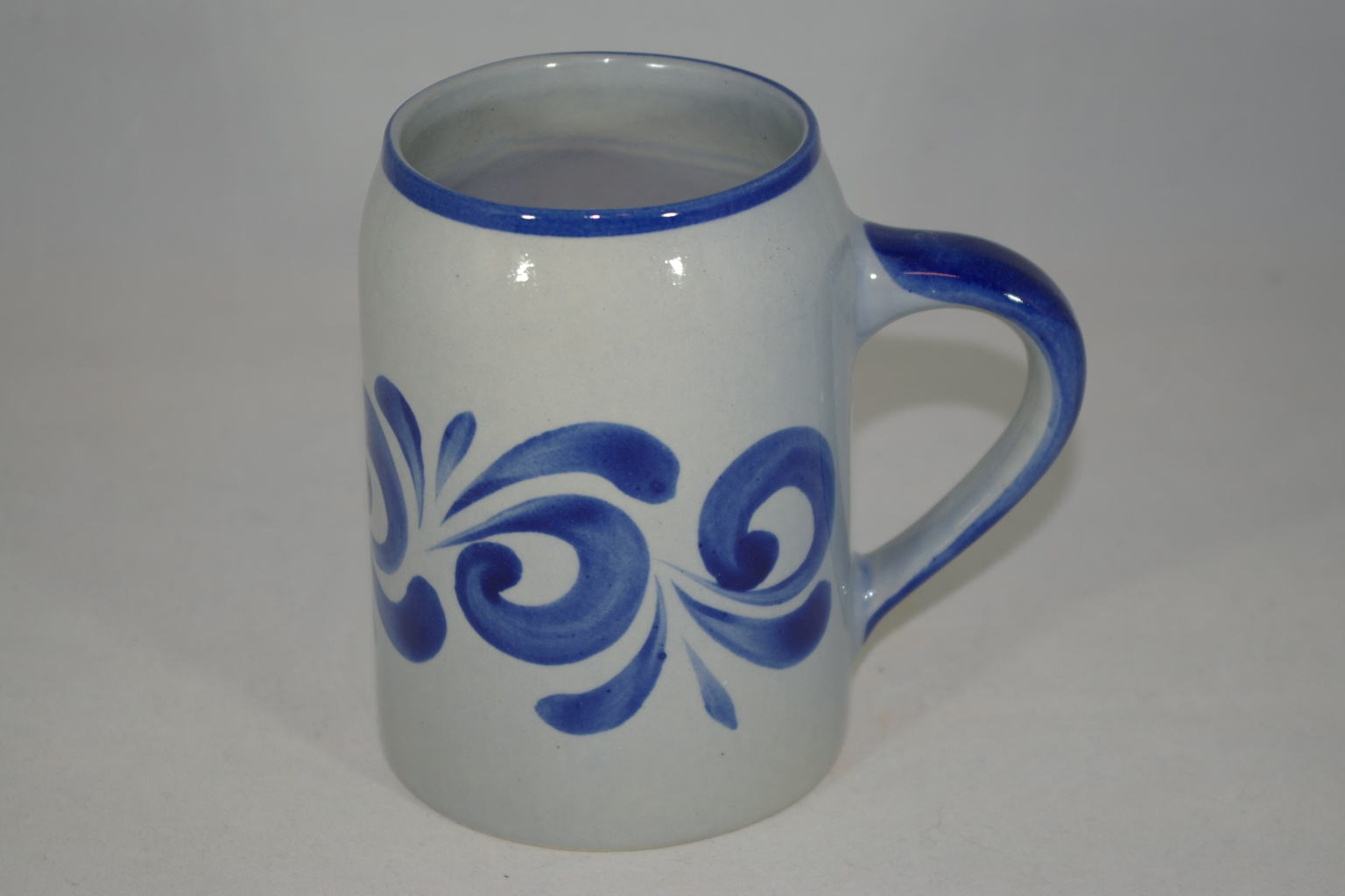 Jeder Krug wird aus robustem, hochgebranntem Steinzeug gefertigt und anschließend mit der typischen grau-blauen Glasur versehen. Das macht ihn spülmaschinenfest, geschmacksneutral und besonders langlebig.