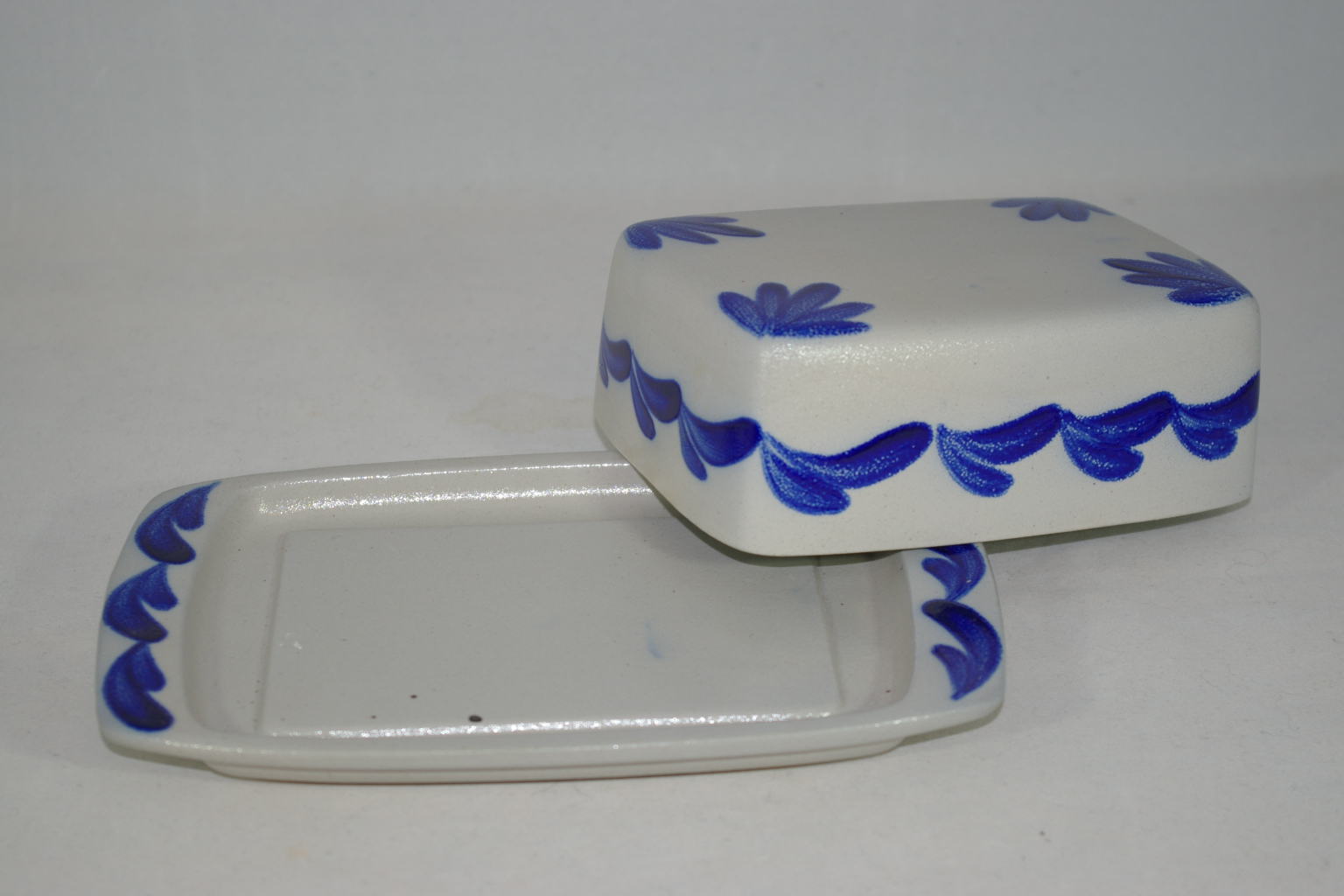 Butterdose gross grau blau Salzglasur Butterdose gross grau blau Salzglasur