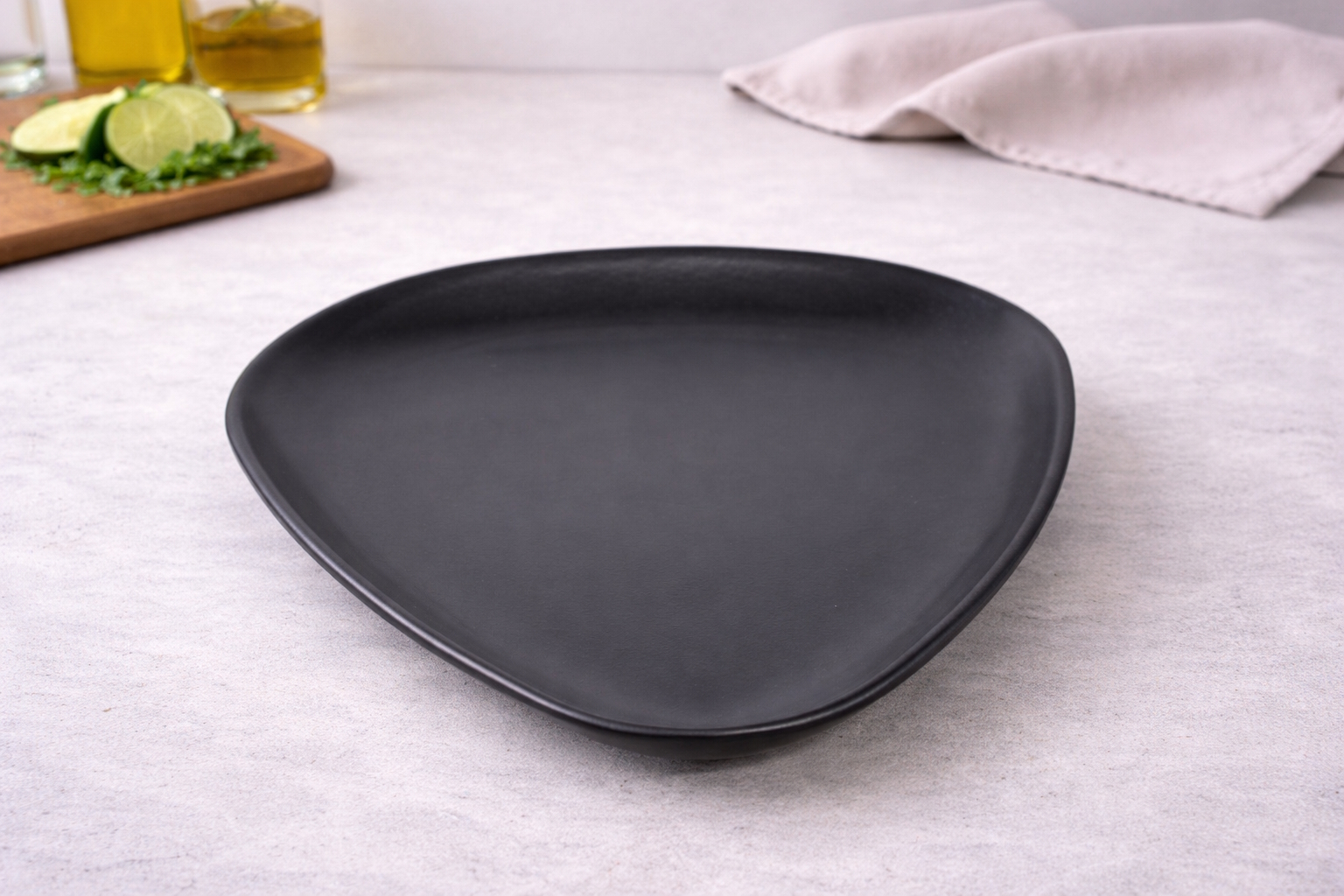 Der Tria Stone Essteller aus Keramik überzeugt durch seine außergewöhnliche, sanft dreieckige Form und die elegante mattschwarze Oberfläche im modernen Stone-Look. Das minimalistische Design macht den Teller zu einem echten Blickfang auf jedem gedeckten Tisch.
