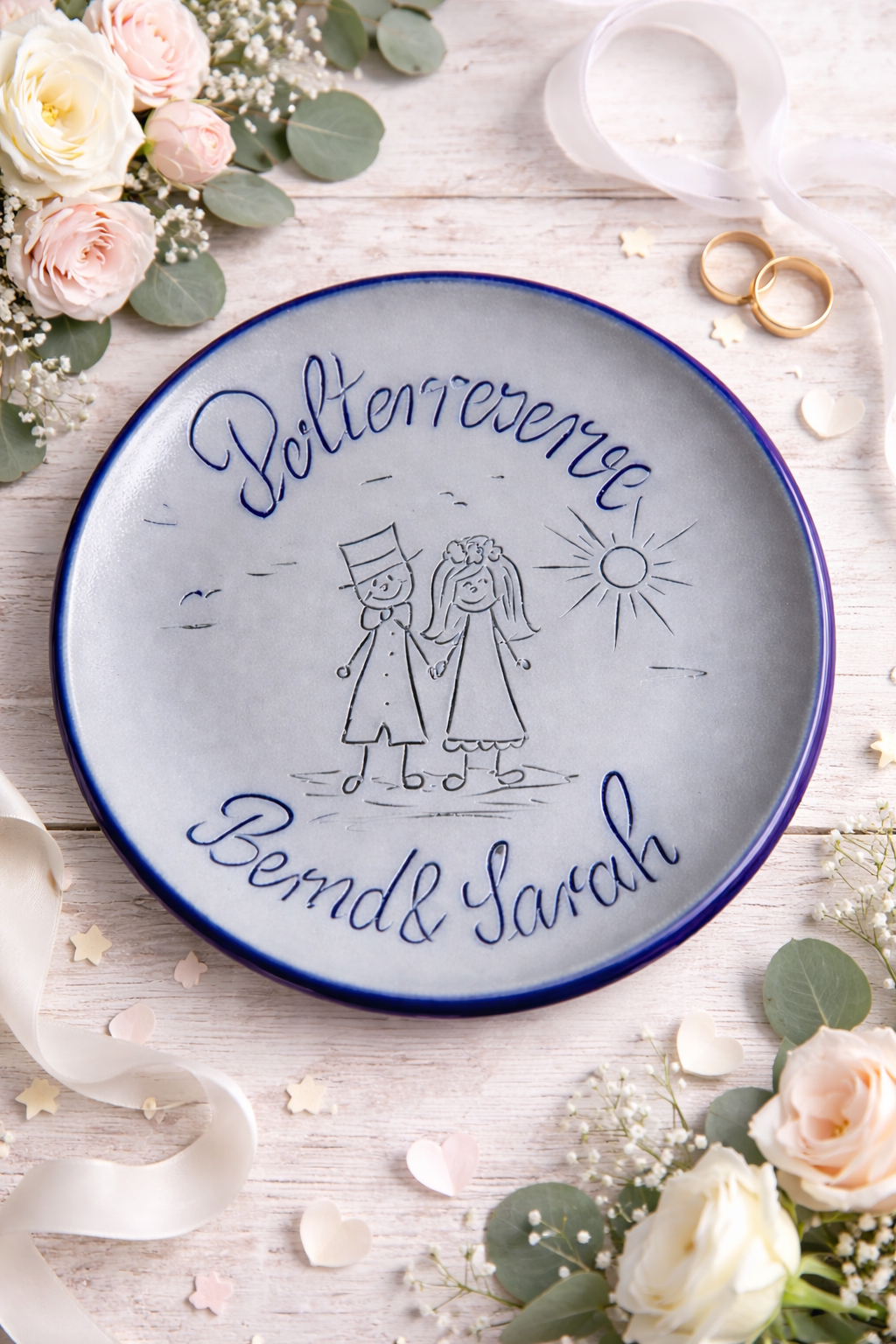 Jeder Teller wird mit viel Sorgfalt gefertigt und individuell gestaltet. Dadurch entsteht ein persönliches Unikat, das sich hervorragend als Geschenk für das Brautpaar eignet und auch nach der Hochzeit noch lange Freude bereitet.